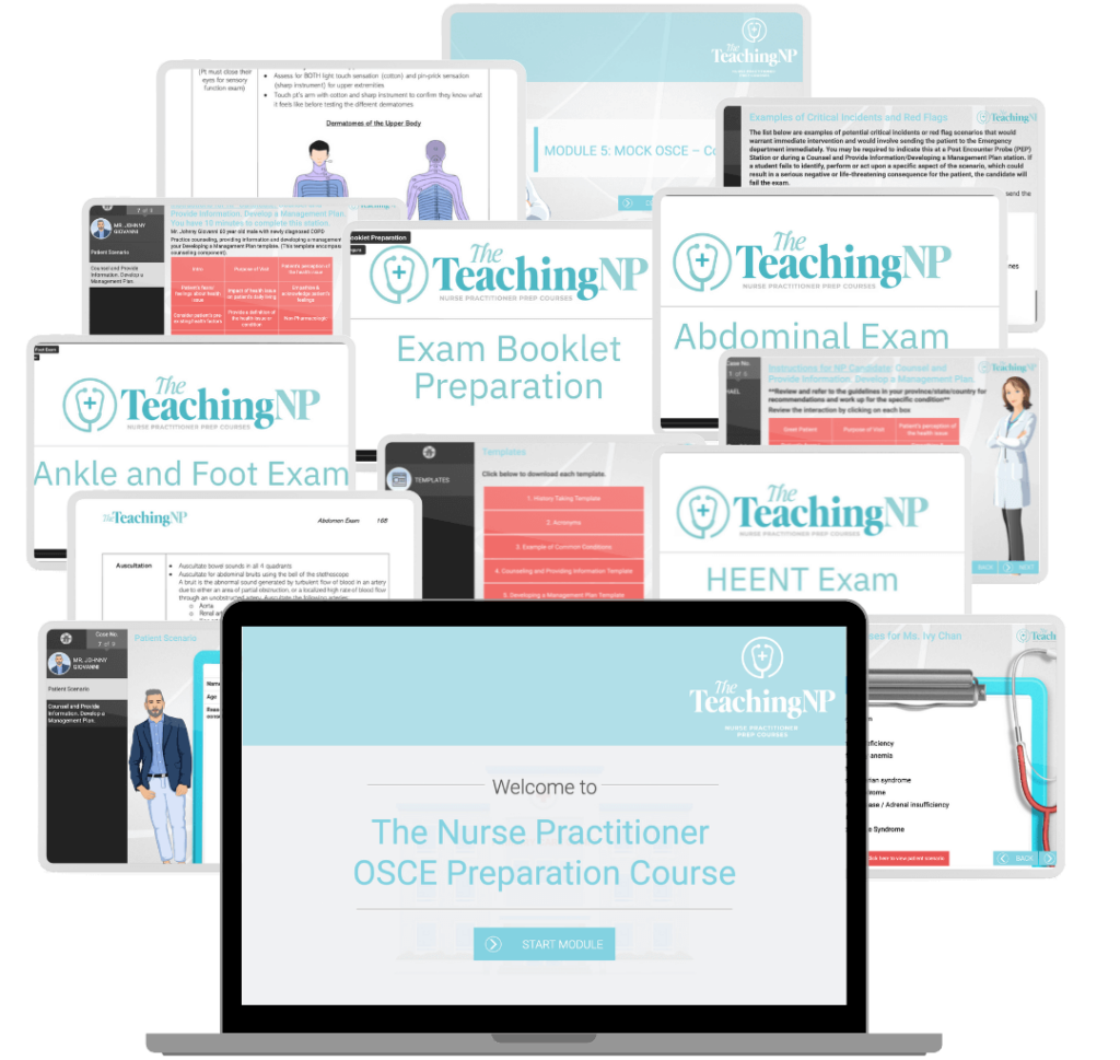Our comprehensive E-course is meticulously designed for busy individuals just like you. Our NP OSCE Preparation Course provides systematic techniques necessary for OSCE success.